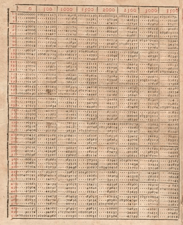 Er hat auch festgestellt, dass es reicht, eine Tabelle nur für die Zahlen zwischen 1 bis 10 zu erstellen, weil jede andere Zahl durch Skalieren somit erreichbar ist.