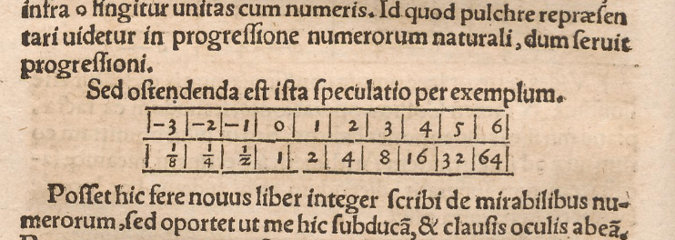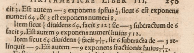 Stifel gab explizit Beispiele für das Rechnen mit negativen Exponenten.