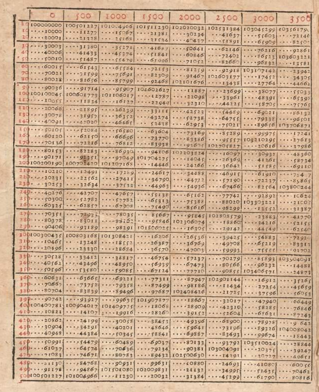 Er hat auch festgestellt, dass es reicht, eine Tabelle nur für die Zahlen zwischen 1 bis 10 zu erstellen, weil jede andere Zahl durch Skalieren somit erreichbar ist.