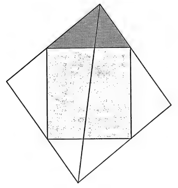 - Der Satz, der besagt, dass eine Gerade, die den rechten Winkel eines Dreiecks halbiert, das Quadrat an der Hypotenuse ebenfalls halbiert.