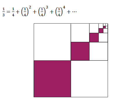 - Geometrische Darstellungen unendlicher Reihen, wie z.B. 1/3=1/4+1/16+….